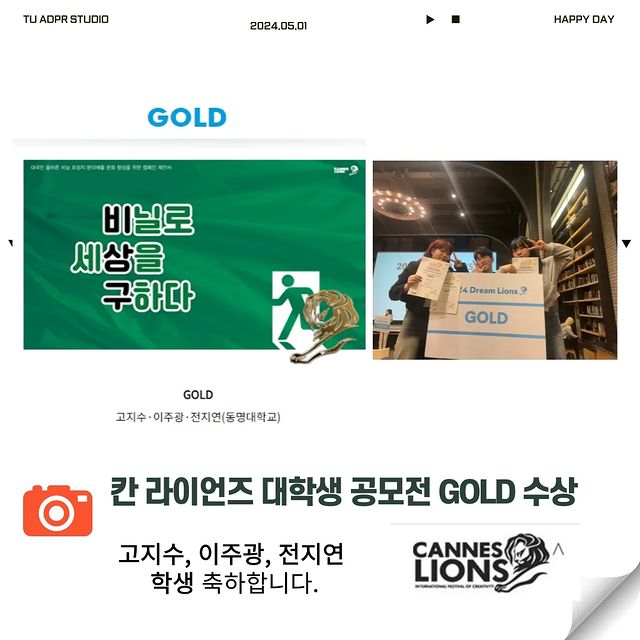 📣 칸 라이언즈 대학생 공모전 GOLD(2위) 수상!!🏅 4학년 고지수, 이주광, 전지연 학생 축하합니다.✨️✨️