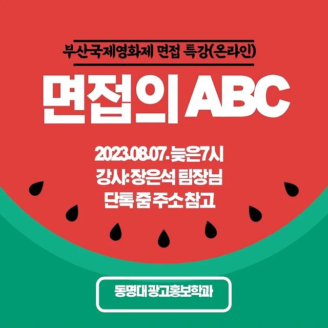 📣 부산국제영화제 자원봉사 면접 대비 긴급 특강이 오늘 오후 7시, 줌을 통해 진행됩니다. 서류에 합격한 학생분들의 많은 관심 부탁드립니다.