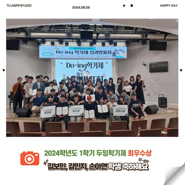 📣 조금 늦은 소식!! 축하합니다. 우리 학과 김민지, 김보민, 손아연 학생이 두잉학기제 최우수상을 받았다는 소식입니다.🏅✨️ 수업 뿐만 아니라 비교과