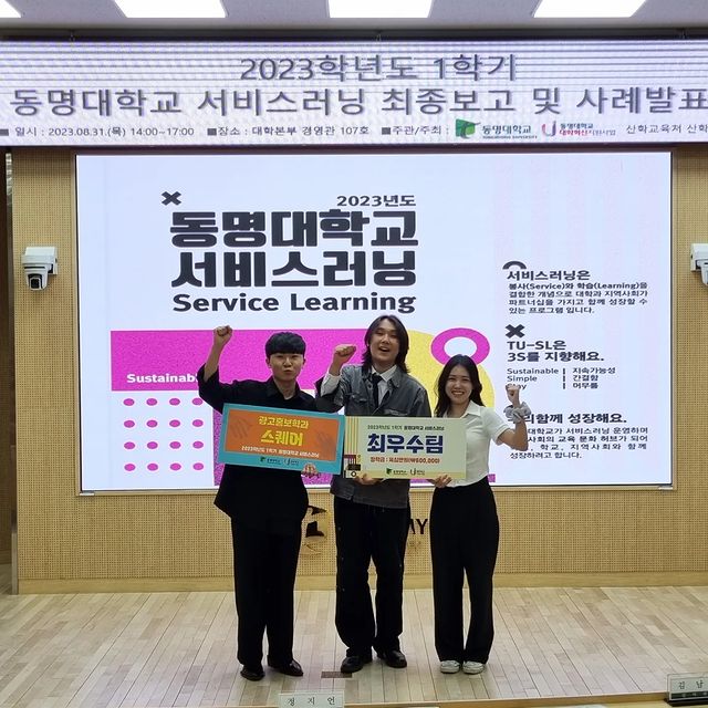 📣 3학년 백호현, 박채연, 하석재 등 3명이 2023년 교내 서비스러닝 최우수상(상금 60만원)을 받았어요.🏆 방학 중에 최선을 다해 활동한 학생들께 박수를
