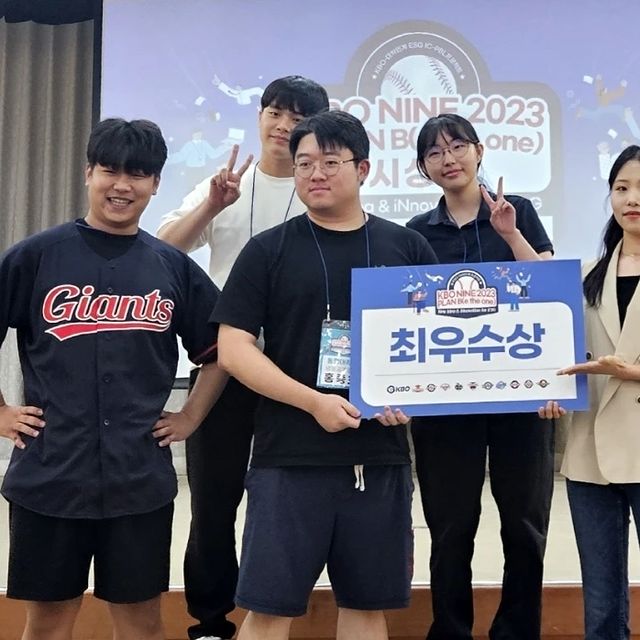 📣 축하해 주세요! 25개 대학이 참여한 KBO(한국야구위원회) 나인(NINE) 시즌 2023 성과공유회에서 3학년 남균호 학생이 최우수상, 4학년 이승진 학생과 3학