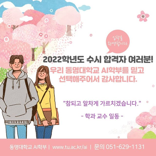 동명대 AI학부, 2022학년도 수시 합격자 여러분!