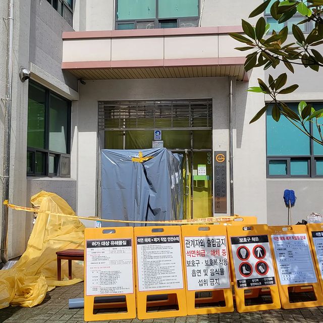 건강하고 안전한 학교생활을 위해 석면철거 공사중 입니다. 2개월 후 멋진 실습실이 만들어집니다.