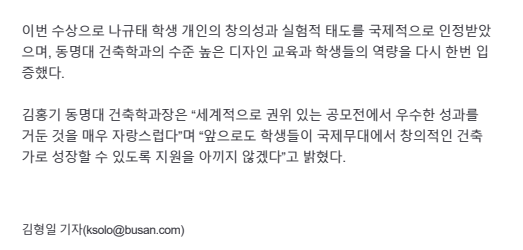 동명대 건축학과, 대형 공모전 연일 기록 경신… 대한 민국건축대전 등 수상·본선진출 총 40여명