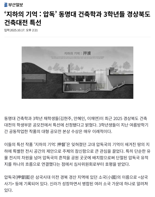 동명대 건축학과 3학년들 경상북도건축대전 특선