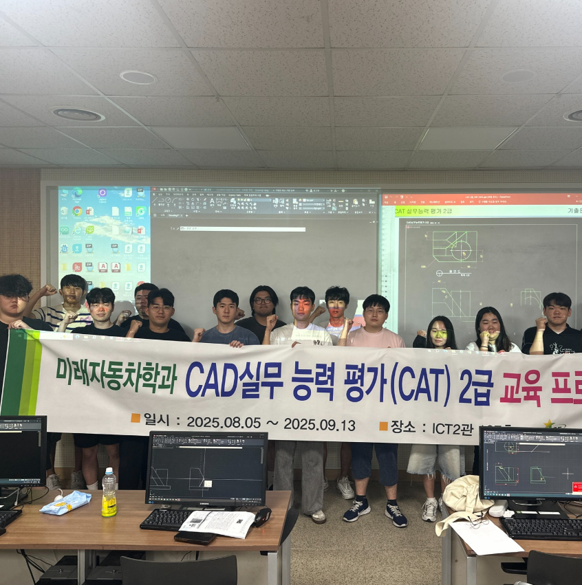 • 동명대학교 미래자동차학과 재학생 여러분께 우리 학과는 지난 20여 년간의 교육 노하우를 바탕으로 자작자동차 동아리 활동을 중심으로 다양한 교육 프로그램을 운영하며, 학년별 성장 단계에 맞춘 비교과 활동을 통해 학생들의 역량을 체계적으로 키우고 있습니다. 1학년은 운전면허 취득, 2학년은 CAD 자격증, 3학년은 국가기술자격, 4학년은 특허 출원을 권장하여, 실무 능력을 단계적으로 쌓아갈 수 있도록 지원합니다. 또한 “국가기술자격증 취득이 미래 경쟁력이다”라는 비전을 바탕으로 자동차정비, 기계설계, 산업안전, CAD 등 폭넓은 기술 자격증 취득을 적극 뒷받침하고 있습니다. 특히 올해부터는 미래모빌리티 분야의 국책사업(RISE 사업)을 유치하여, 학생들이 전공 역량을 강화하고 미래를 준비할 수 있도록 동아리 활동과 자격증 취득 프로그램을 더욱 내실 있게 운영하고 있습니다. 이러한 꾸준한 노력의 결과, 매년 대부분의 졸업생들이 한 개 이상의 자격증을 취득하고 관련 분야 기업으로 진출하고 있습니다. 한국교통안전공단, 군무원, 산업인력관리공단 등 공공기관은 물론, 현대자동차, S-Oil과 같은 대기업, 그리고 자동차 부품 제조업과 차량정비 서비스업을 포함한 중견기업까지 폭넓은 취업 성과를 보여주고 있습니다. 무엇보다 이러한 성과는 입학부터 졸업 이후까지 이어지는 체계적인 멘토링과 학생 맞춤형 지도 덕분이라 할 수 있습니다. 학과는 언제나 학생들이 전공 역량을 키우고 꿈을 실현할 수 있도록 든든한 동반자가 되어 드립니다. 여러분이 학과와 교수님들을 믿고 자신감을 가지고 노력한다면, 졸업할 때는 스스로가 한층 성장한 모습을 자랑스럽게 느끼게 될 것입니다. 마지막으로 우리 학과의 우수성을 널리 알리고 함께 성장하기 위한 것입니다. 주변의 친구, 후배, 친인척 중 대학 진학을 희망하는 분이 있다면 동명대학교 미래자동차학과를 꼭 소개해 주시기 바랍니다. 보다 자세한 안내가 필요하다면 저나 지도교수에게 직접 연락을 주시거나 지인의 연락처를 알려주시면, 성심껏 상담과 안내를 드리겠습니다. 또한 재직자 전형과 편입학을 희망하는 분들께도 맞춤형 안내와 상담을 제공하고 있으니 많은 소개 부탁드립니다. 2025.08.20. 미래자동차학과 학과장 오갑석교수 (사무실)051-629-1621, (휴대폰) 010-5092-7618 VIEW DETAIL