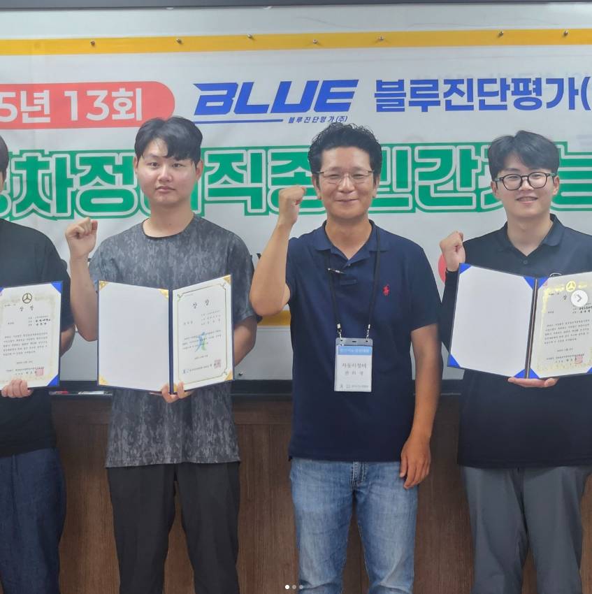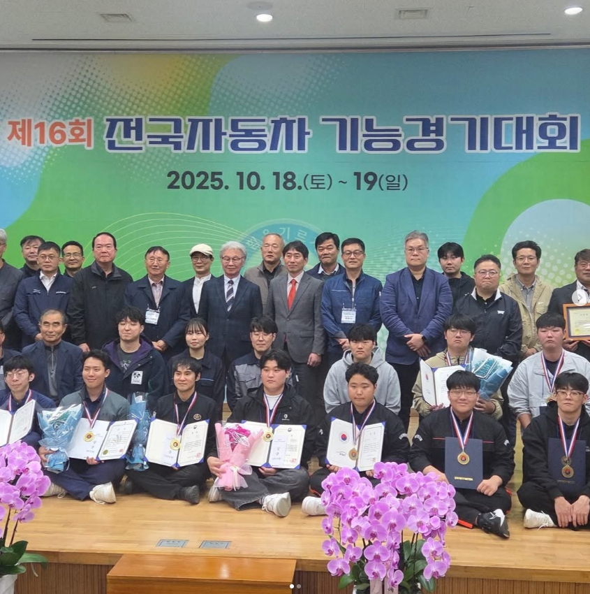 • 한국자동차기술인협회와 한국직업능력평가원이 주최한 ‘2025년 제16회 전국자동차기능경기대회’ 수상자들이 수상 후 기념촬영을 하고 있다 .