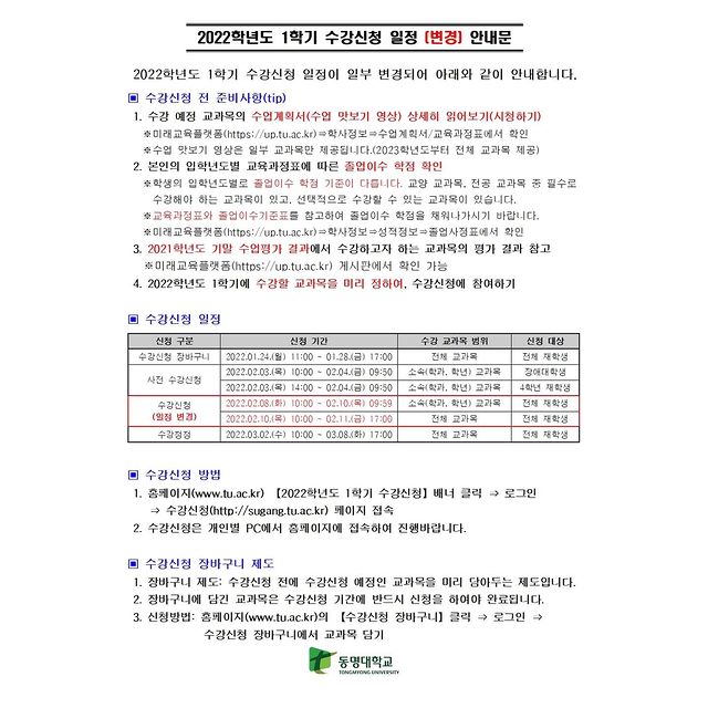 [수강신청 일정변경 안내]