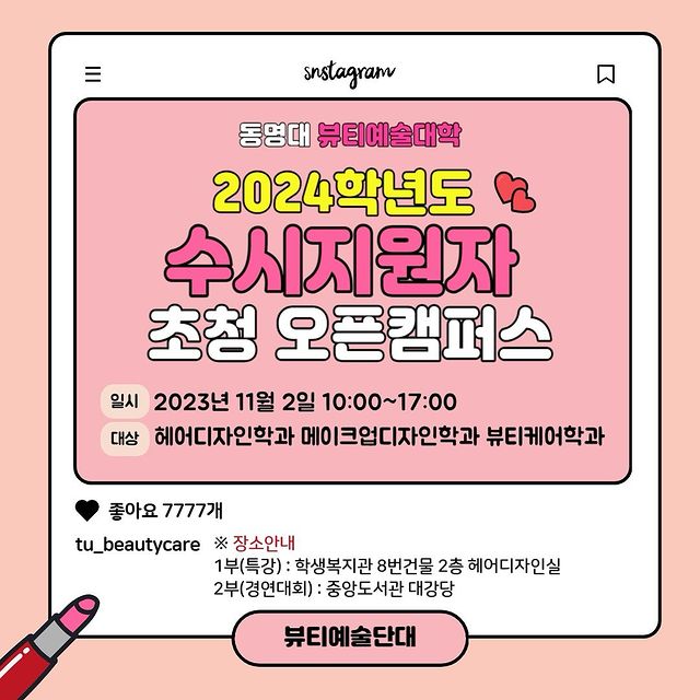 2년만에 다시 재개하게 된 동명대학교 뷰티케어학과의 최대 행사‼️