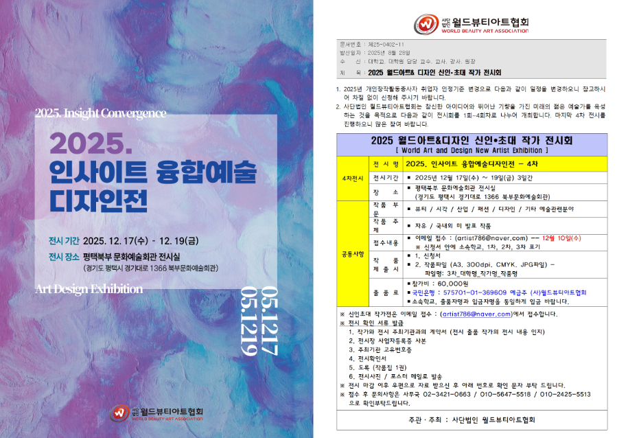 제4차 『2025 인사이트 융합예술디자인전』 안내
