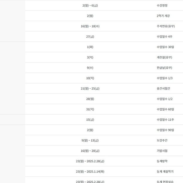동명대학교 뷰티산업학과 2024학년도 2학기 학사일정 안내 드립니다~