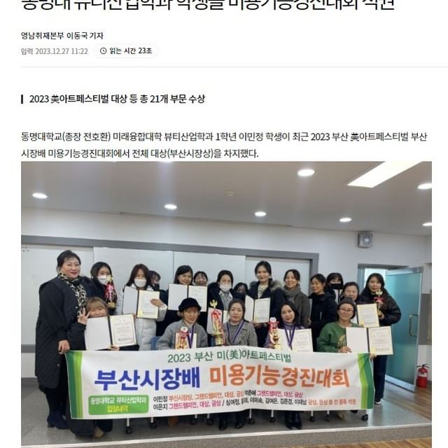 동명대학교 뷰티산업학과 입상내용이 아시아경제 신문에 기사가 났어요~~~~
