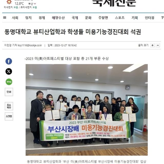 2023 부산 미(美)아트페스티벌 부산시장배 미용기능경진대회 동명대학교 뷰티산업학과 입상