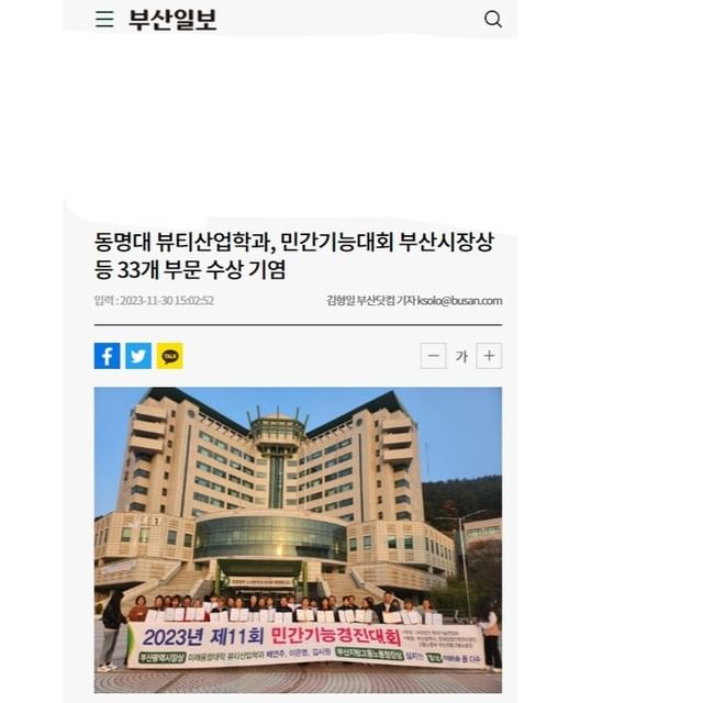 동명대 ‘민간기능대회’ 부산시장상 등 33개 부문 수상(부산일보)