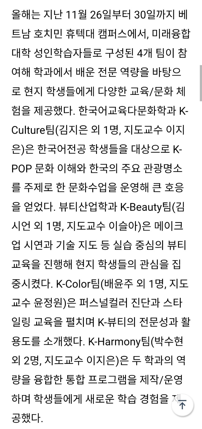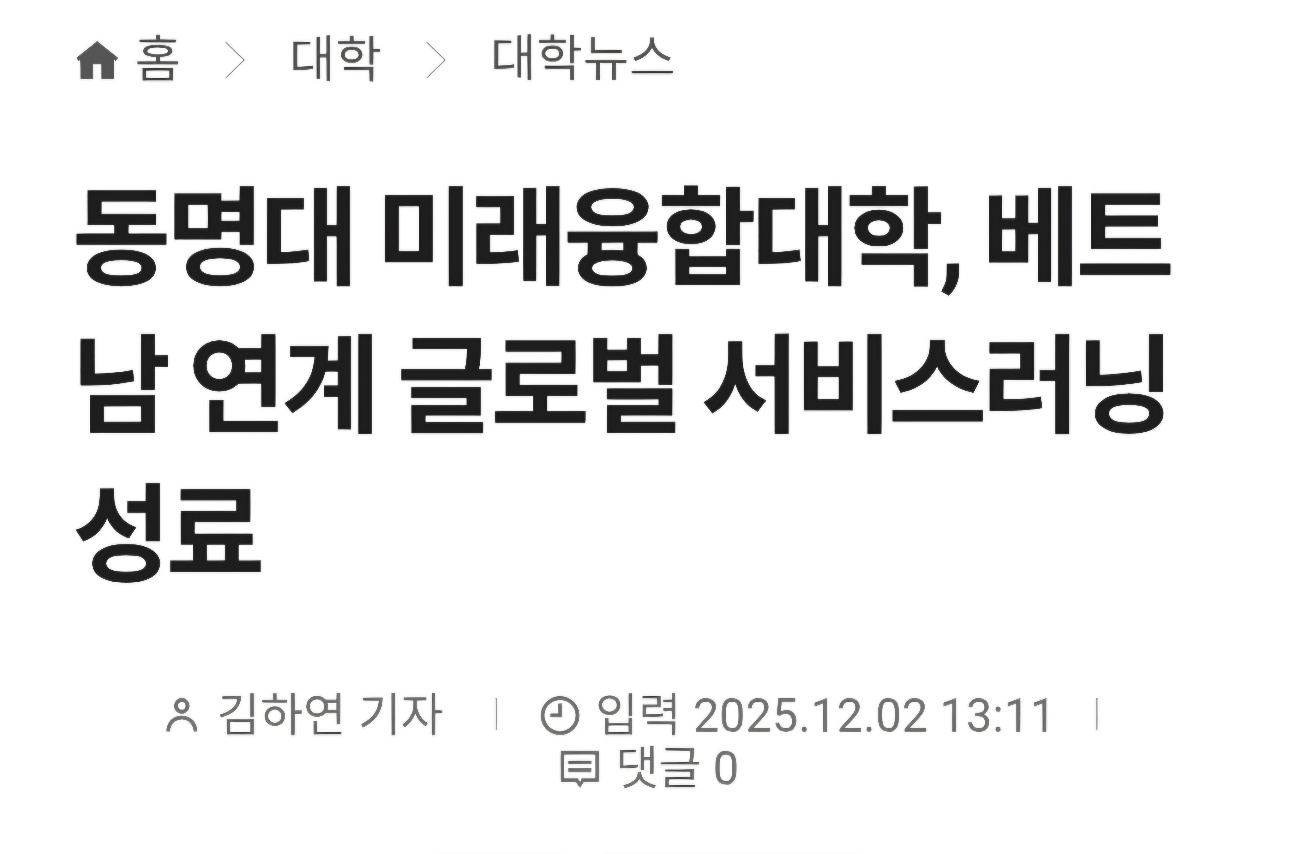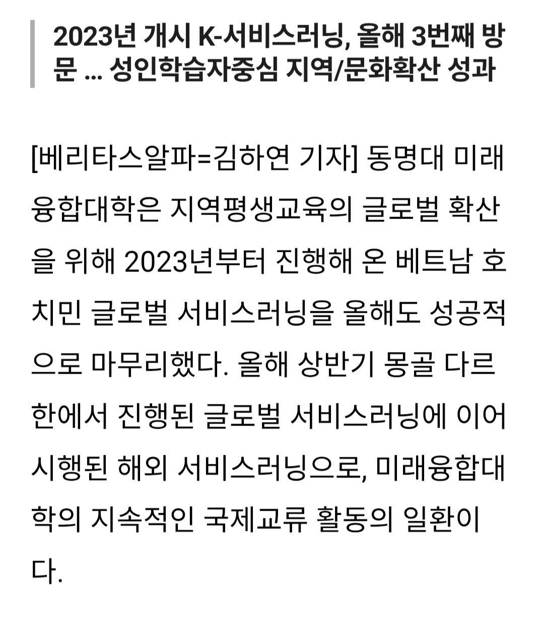 동명대학교 미래융합대학 베트남 연계 글로벌 서비스 러닝