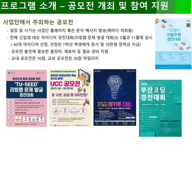동명대 컴퓨터공학과는 SW 중심대학 사업에 참여하고 있으며 코딩 경진 대회 등 다양한 공모전에 참가하세요.