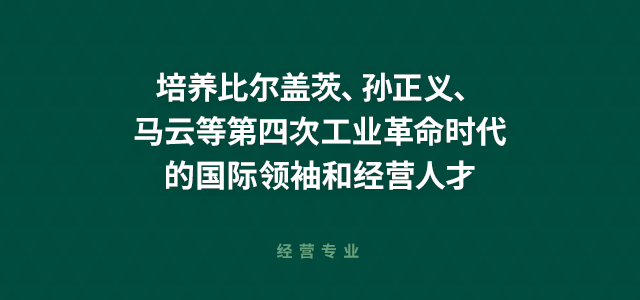 经营专业以企业为中心,培养可以战略性地经营多种经营组织的、具有实力的国际人才。旨在培养能够看清第四次工业革命为象征的未来环境的变化动态,保存组织的生存能力,并能给组织带来成长与发展的未来经营人才,为此实施理论和实务的均衡教育。进而,基于企业家精神,向希望开发创业经历的学生们毫不吝啬地提供额外的专业指导和支助活动。