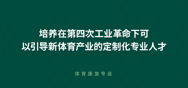 本专业以2004年成立的体育专业为怒提,在短时间内多次大力发展,尤其是,通过国家教育支助项目之一“体育产业专业人才培养项目”的运营,尽其最大努力使本专业学生步入社会时比其他学生能够站在更好的竞争优势上。以此为基础,为了迎合时代的发展,本专业旨在培养以体育康复领域为特化领域的优秀人才。