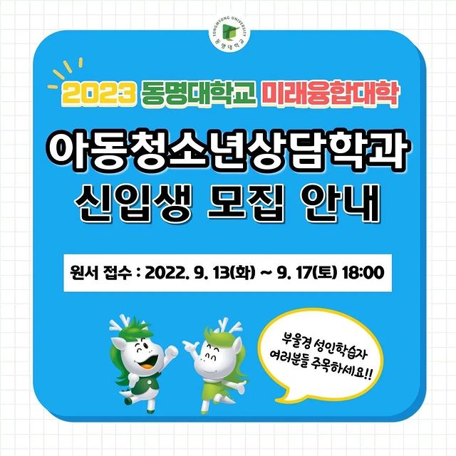 <2023학년도 동명대학교 미래융합대학 아동청소년상담학과 수시모집 안내>