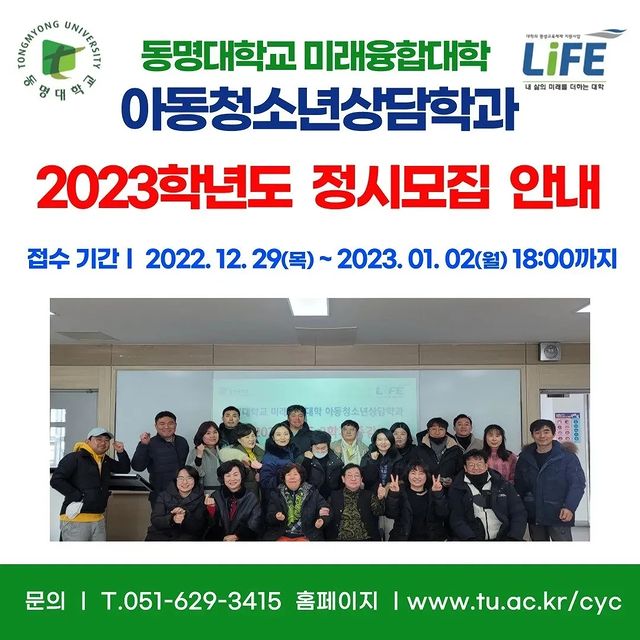 <2023학년도 동명대학교 미래융합대학 아동청소년상담학과 정시모집 안내>