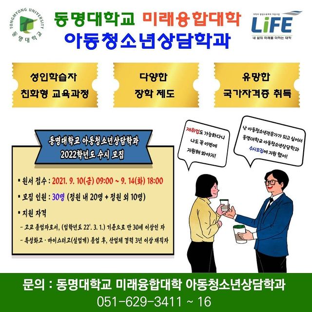 <동명대학교 미래융합대학 아동청소년상담학과 2022학년도 수시모집 안내>