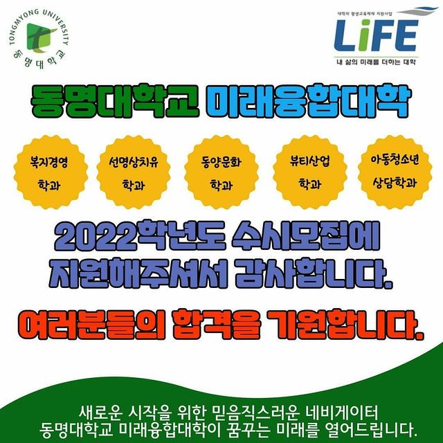 동명대학교 미래융합대학 "2022학년도 수시모집"에