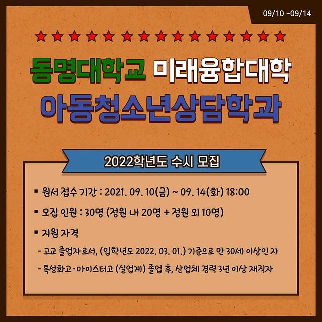 <동명대학교 미래융합대학 아동청소년상담학과 2022학년도 수시모집 안내>