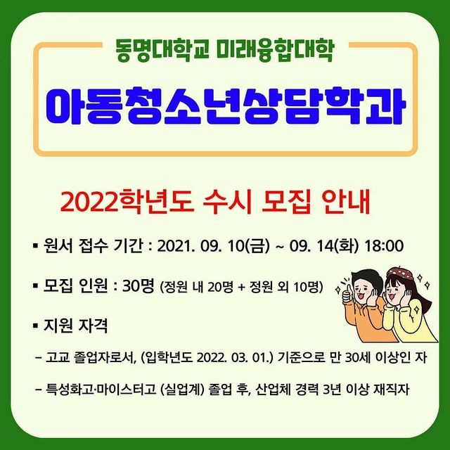 <동명대학교 미래융합대학 아동청소년상담학과 수시모집 안내>