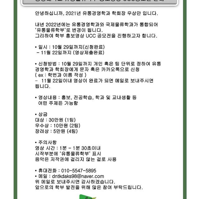 유통물류학부 홍보영상 UCC공모전 안내