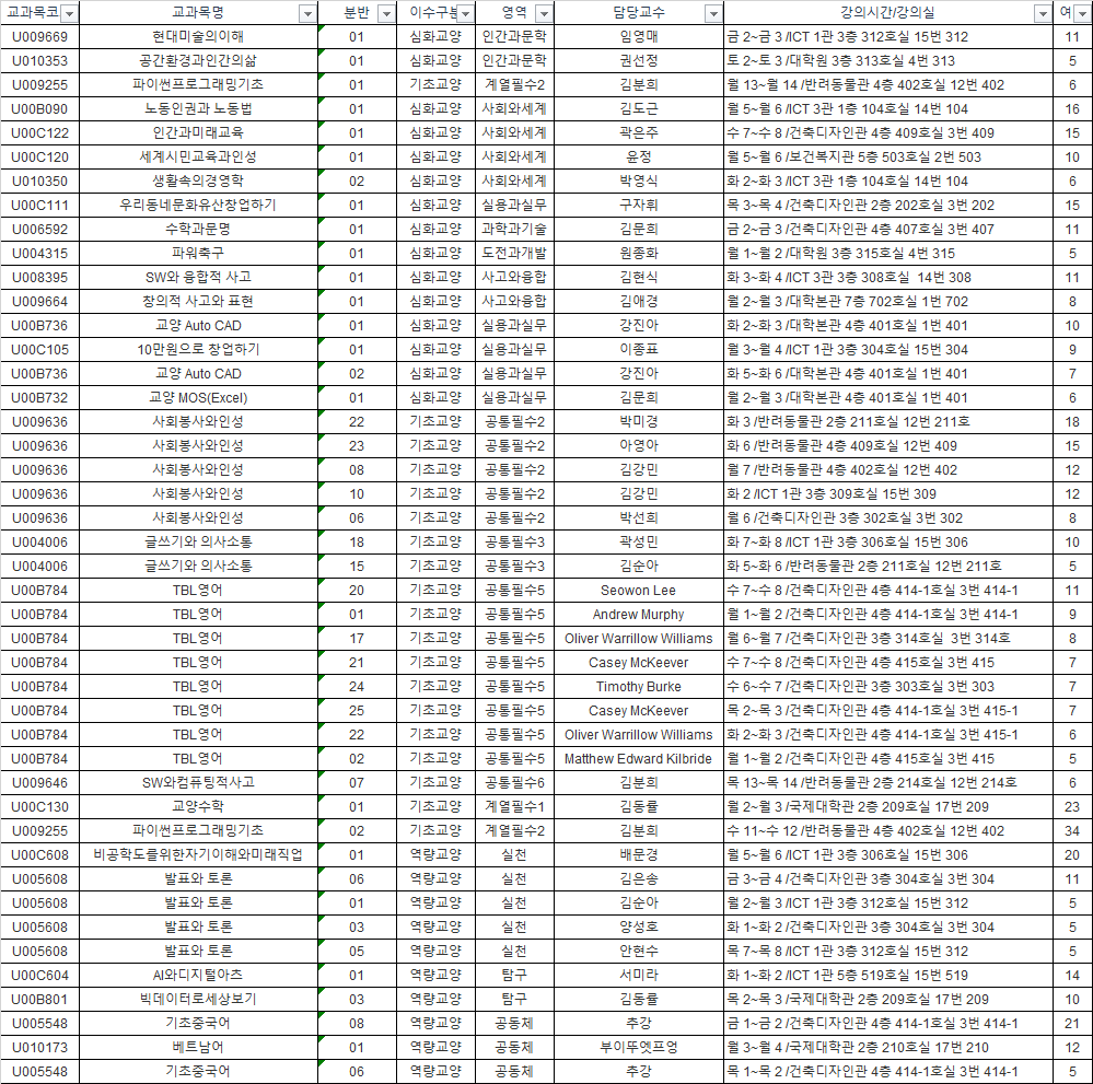 25-2학기 여석이 남은 과목 마지막 공지입니다.