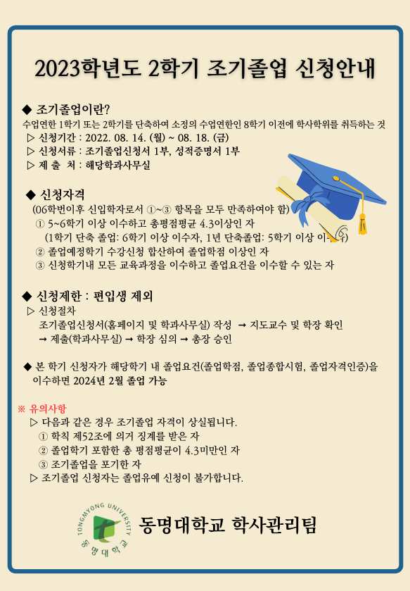 2023학년도 2학기 조기졸업 신청 및 포기 안내