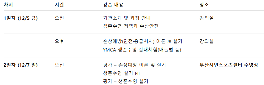 📢 생존수영지도자 자격과정 참여 학생 모집 공고
