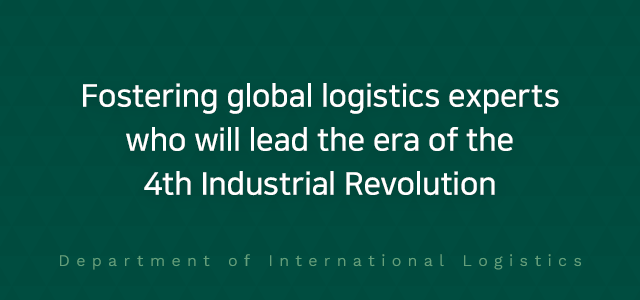 Fostering global logistics experts who will lead the era of the 4th Industrial Revolution The Department of International Logistics is a high-tech department of the future to foster global logistics professionals who will lead the era of the 4th Industrial Revolution. The 4th Industrial Revolution is led by innovation in digital advanced technologies such as artificial intelligence (Al), smart factories, and the Internet of Things (loT), as well as international logistics that manages, operates, and optirrdzes industries and businesses using these technologies. The Department of International Logistics aims to cultivate professional manpower required in the shipping, port, aviation, logistics and marine industries, finance, MICE, trade, information and communication, and marine cruise industries, as well as global companies that are the innovators of the 4th Industrial Revolution. We operate and provide international and systematic education, research, industry-academia cooperation, international exchange and scholarship support programs. Through this, the department has recorded a high employment rate and academic achievement (10 winning teams at the National University Thesis Contest over the past 5 years), and has a strong global network (student exchange with over 30 universities abroad and dual degree programs) and industry-academic cooperation networks. (100 logistics companies and family business networks in Busan/Gyeongnam)