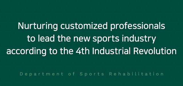 Our department has made a lot of progress for a short period of time, starting as the Department of Physical Education in 2004. In particular, the program is part of it is a national education support project called "Sports Industry Professional Training Projectto advance into society with a competitive advantage over other students. We have done our best to make it possible. Based on this, in order to meet the trend of the new era, we are specializing in the field of sports rehabilitation to cultivate excellent human resources. Educational goals First, training "athlete rehabilitation training experts" in charge of sports injury prevention, rehabilitation, and performance improvement Second, nurturing "elderly exercise rehabilitation experts" in the sports healthcare field in preparation for increased life expectancy Third, fostering "health exercise management expertsto promote wellbeing on health and physical fitness level