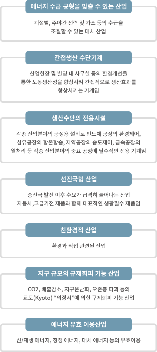 - 산업용 냉난방 시스템 : 신성엔지니어링, 트레인코리아 등