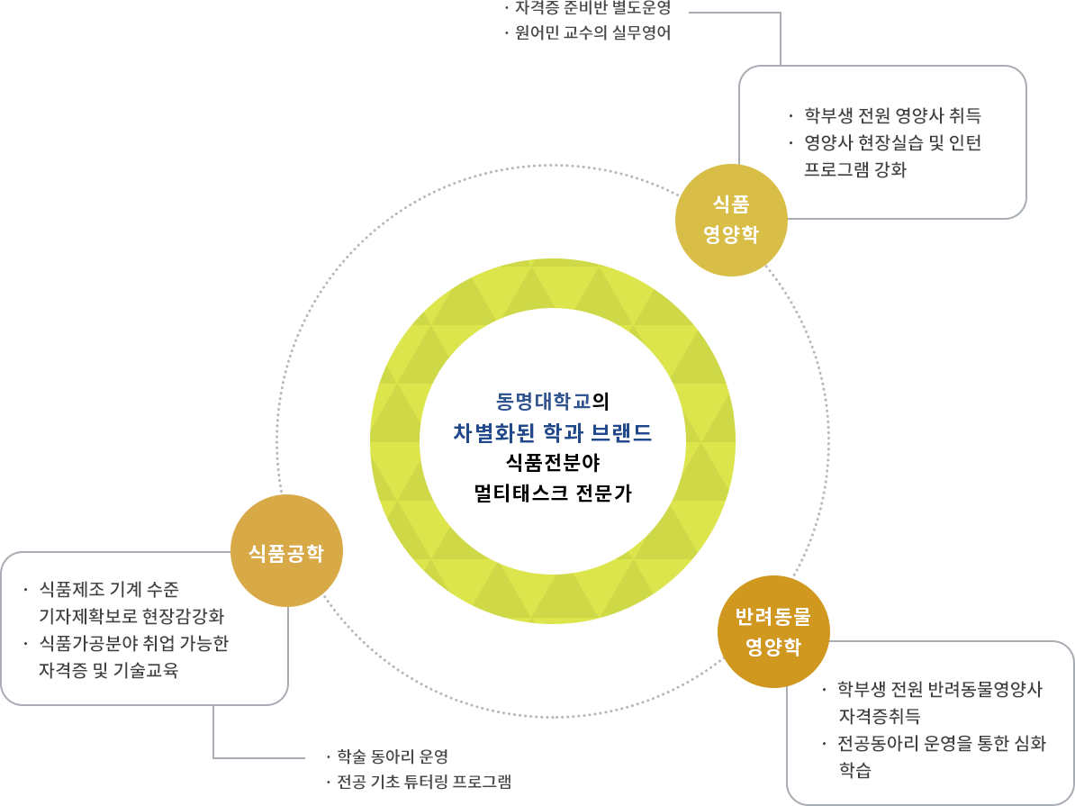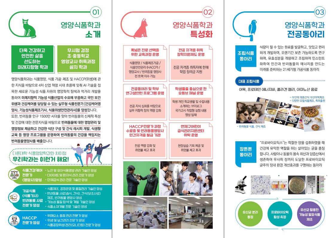 연계전공명 : 펫푸드영양관리전공, 반려동물헬스케어연계전공, 동물심리치료연계전공