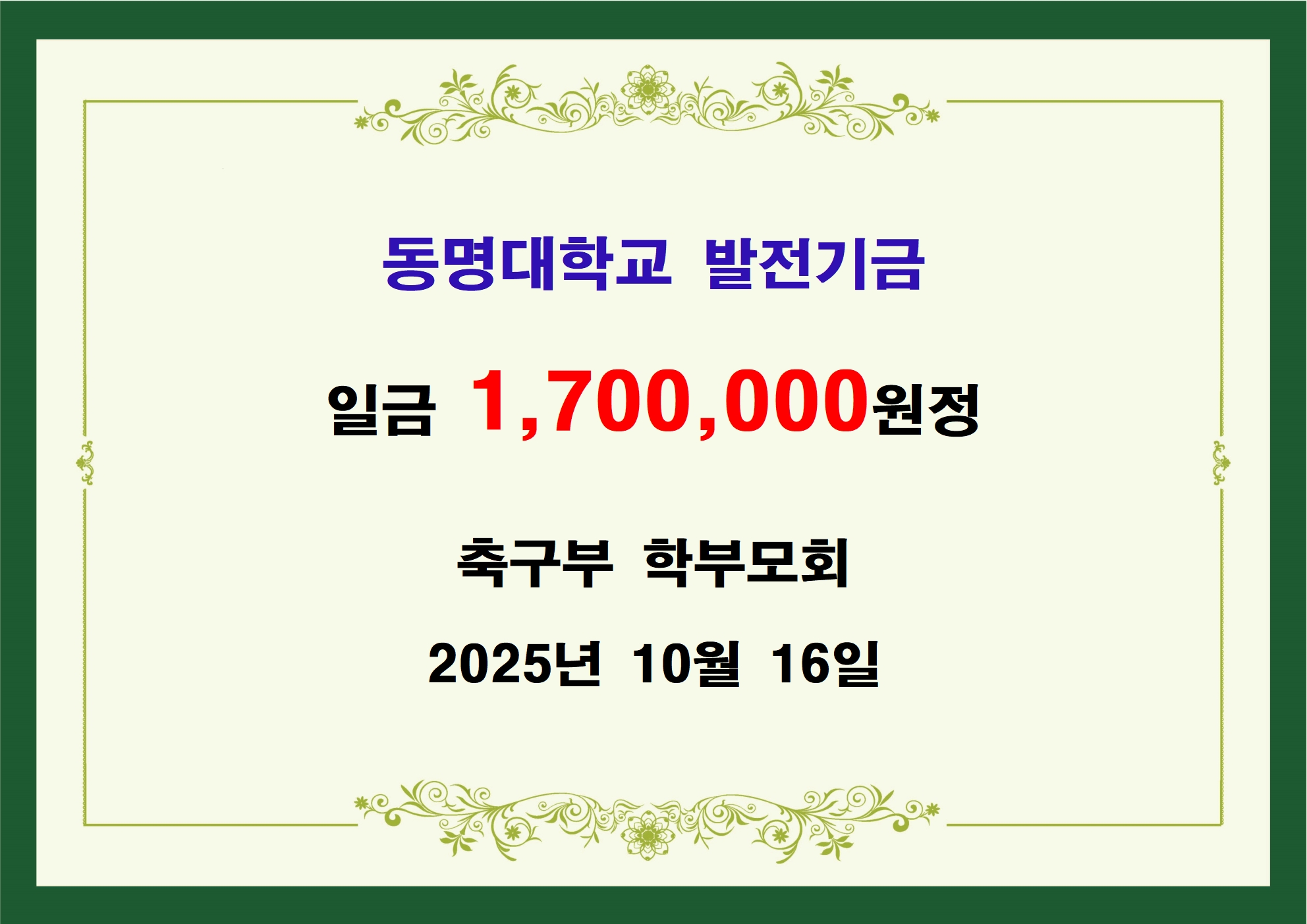 축구부 학부모회 일백칠십만원 기금 전달