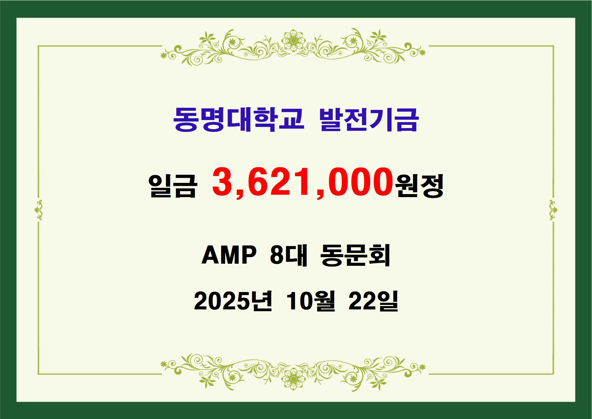 AMP 8대 동문회 삼백육십이만일천원 기금 전달