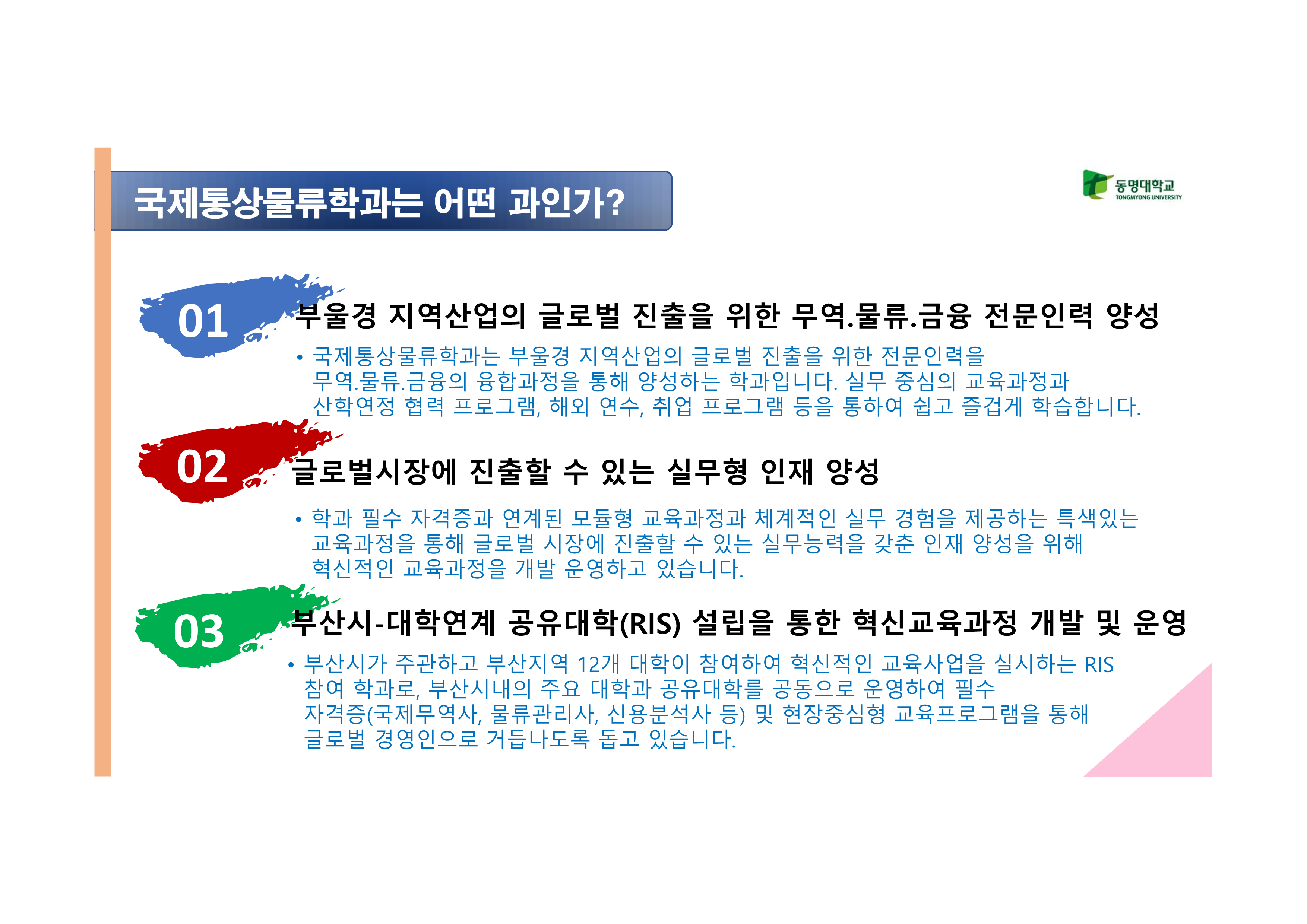 지역혁신 (RIS)-부산공유대학 (BITS) 참여학과 & 부울경 지역 해외취업 명문학과 국제통상물류학과를 소개합니다.