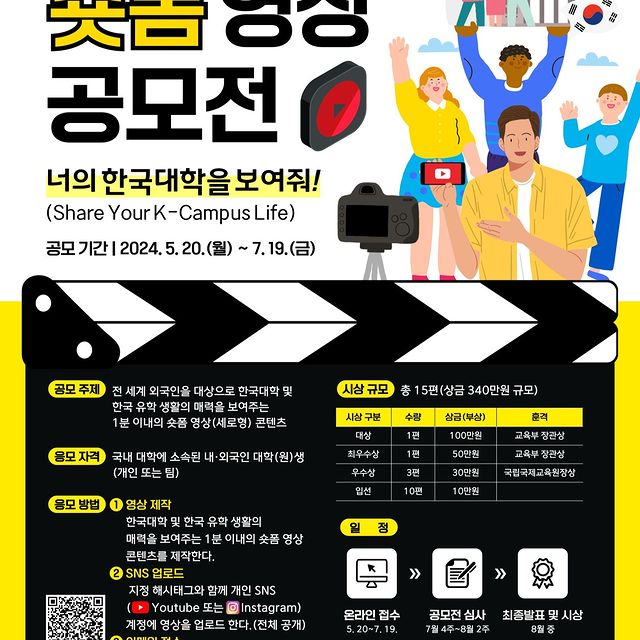 🎉2024년 한국유학 홍보 숏폼 영상 공모전(2024 Study in Korea Promotion Short-Form Video Contest) 알림🎉