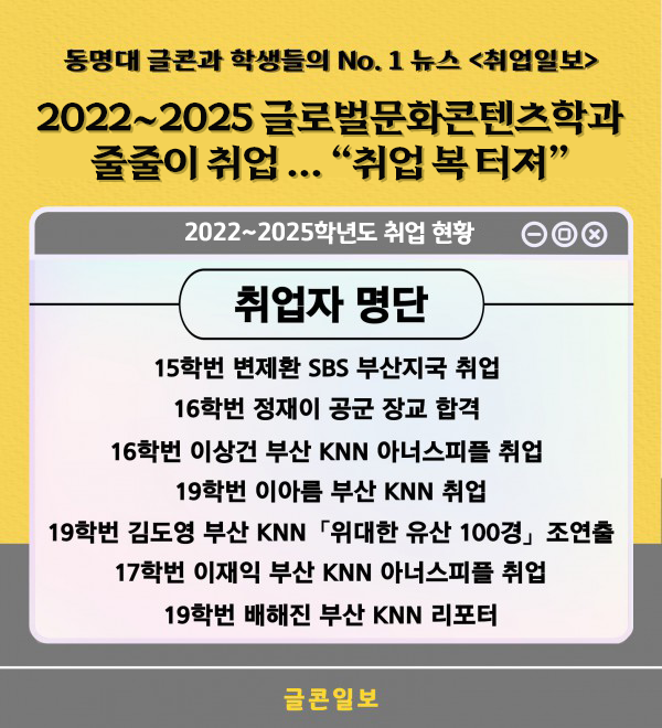 [동명대학교 글로벌문화콘텐츠학과] 지금!우리학과는? - 선배들의 다양한 취뽀비결! 궁금하지~?어서 들어와!!