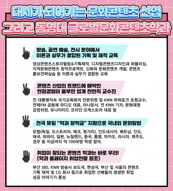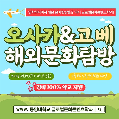새로운 시대의 문화 콘텐츠를 선도하며 글로벌 무대에서 활약할 기회를 동명대학교 글로벌문화콘텐츠학과에서 잡아보세요!