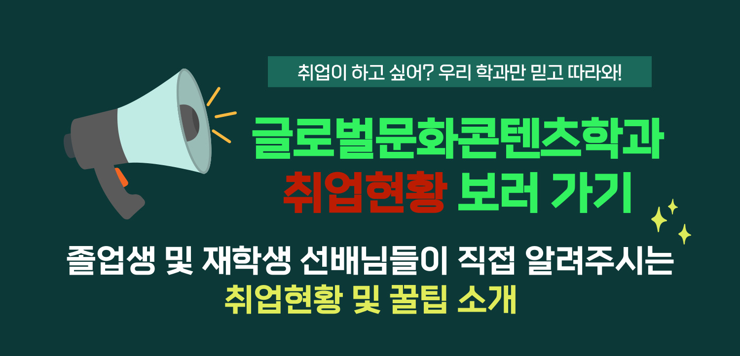 여러분의 열정과 꿈이 현실이 되는 이곳, 글로벌문화콘텐츠학과에서 만나요!