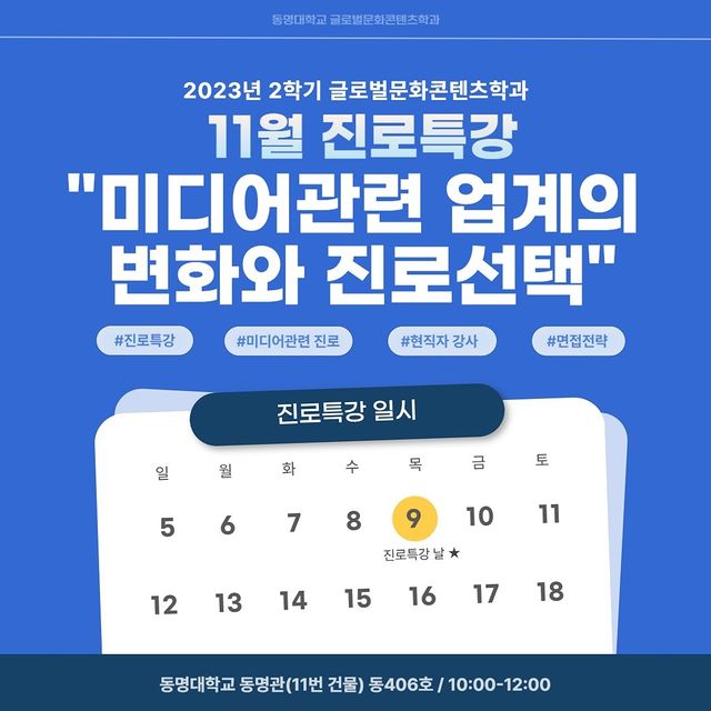 2023학년도 2학기 글로벌문화콘텐츠학과의 11월 진로특강!!