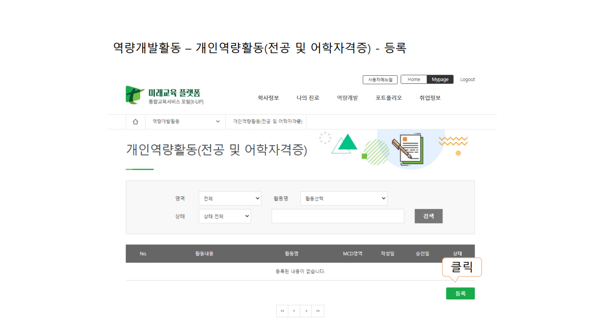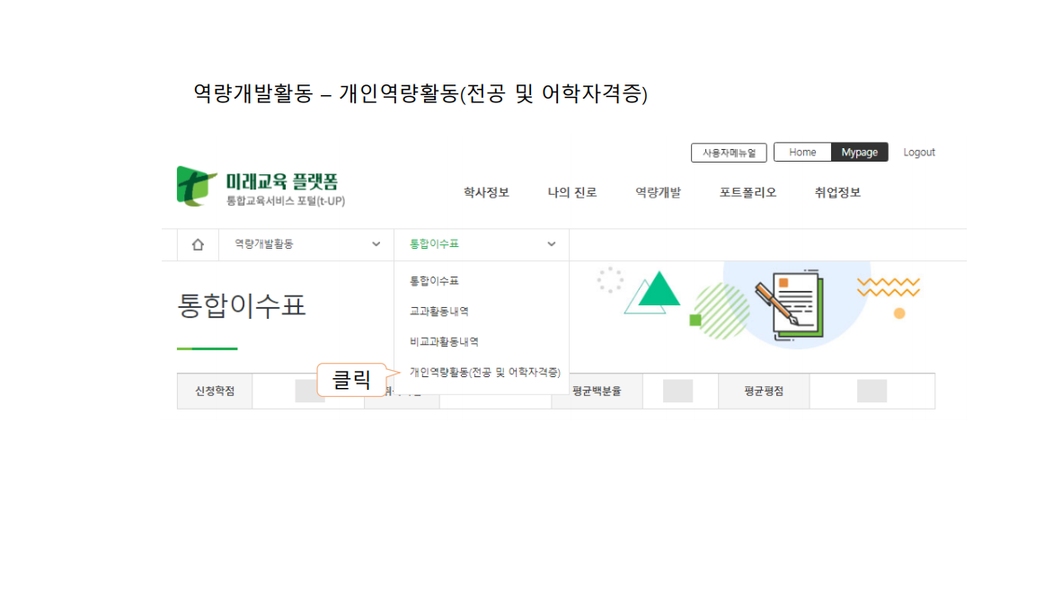 [공지] 티업(t-up) 영어공인자격점수(TOEIC 400) 등록 매뉴얼 /24마일리지=TOEIC 400 이상 / 졸업예비생들 참조