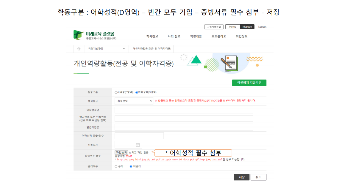 영어공인자격점수 (TOEIC 400) 등록 매뉴얼