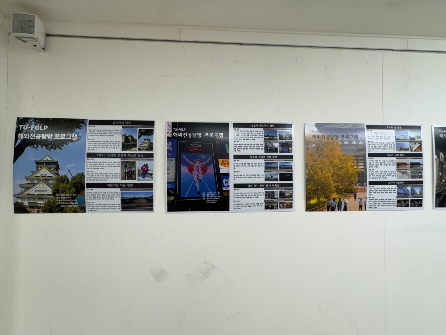 CI사업 성과 공유전시회에서는 대학혁신지원사업비를 통해 진행된 1학년 학생들의 일본 문화탐방 후기, 비교과 성과공모전 수상작, 우수동아리 활동 등 다양한 작품이 전시되었습니다.