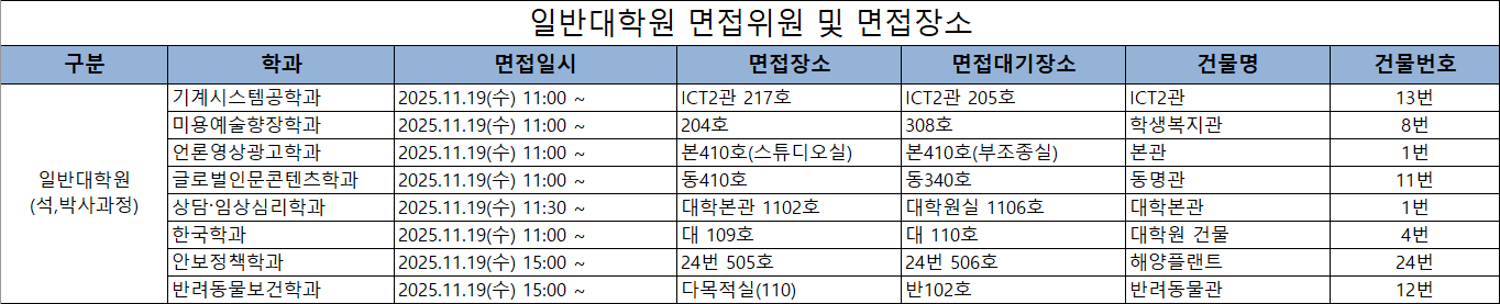 1. 면접일시 : 2025.11.19.(수) 학과별 지정 시간 및 장소