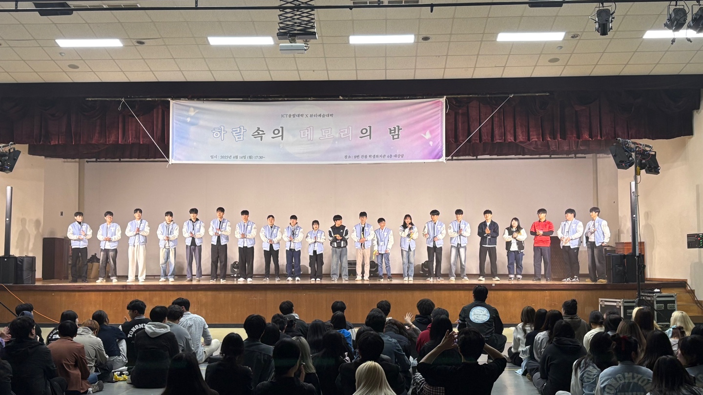 지난 2025년 4월 14일(월), 뷰티예술대학과 ICT융합대학이 함께 주관한 연합 행사 『하람 속의 메모리의 밤』이 학생복지관 4층 대강당에서 성공적에 개최되었습니다. 이번 행사는 두 단과대학 재학생 간의 교류를 목적으로 기획되었으며, 다양한 프로그램을 통해 학과 간 이해를 높이고 친목을 다지는 자리로 마련되었습니다.