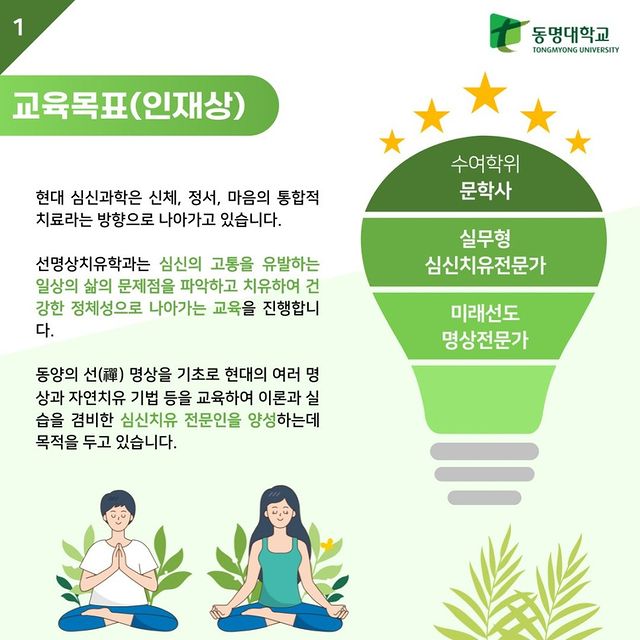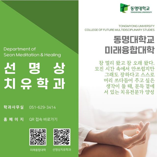 선명상치유학과는 심신의 고통을 유발하는 일상의 삶의 문제점을 파악하고 치유하여 건강한 정체성으로 나아가는 교육을 진행합니다.
